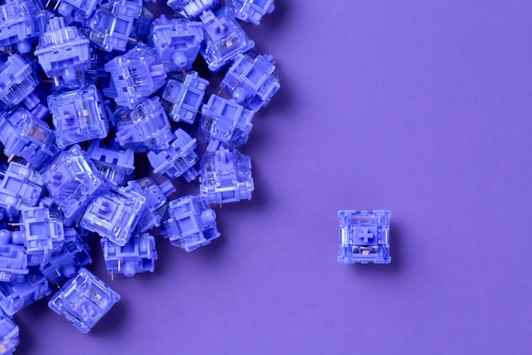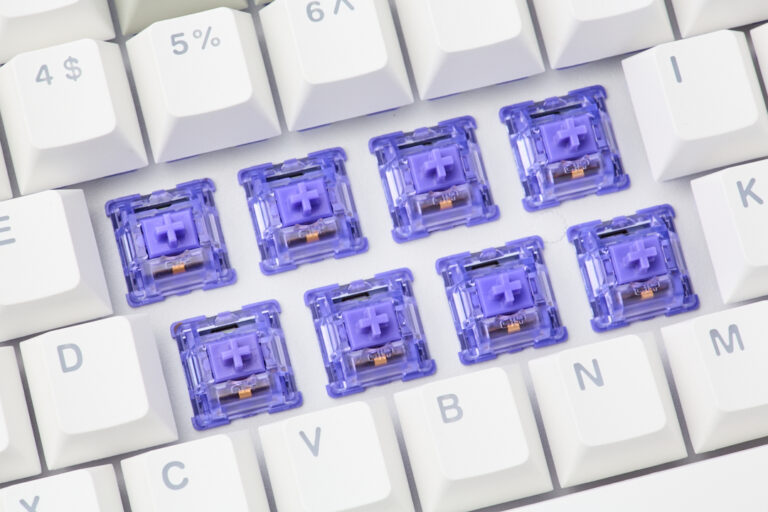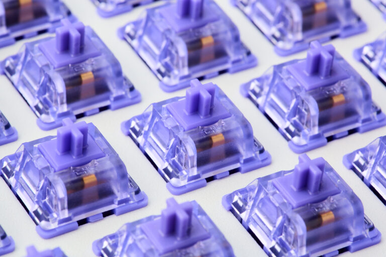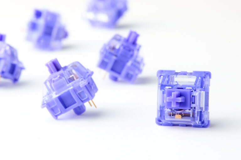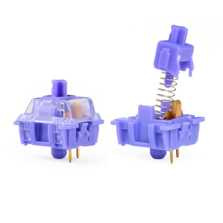 Here are several photos from my photoshoot with CIY & Royal Kludge. This high-performance mechanical switch features a POK stem and a specially modified nylon bottom housing, delivering a smooth, responsive typing experience. With a light 42±5gf actuation force and a satisfying 60±5gf bottom-out, it’s designed for both comfort and precision. Finished in a striking purple and factory-lubed for consistency, this switch is built to last up to 50 million keystrokes.